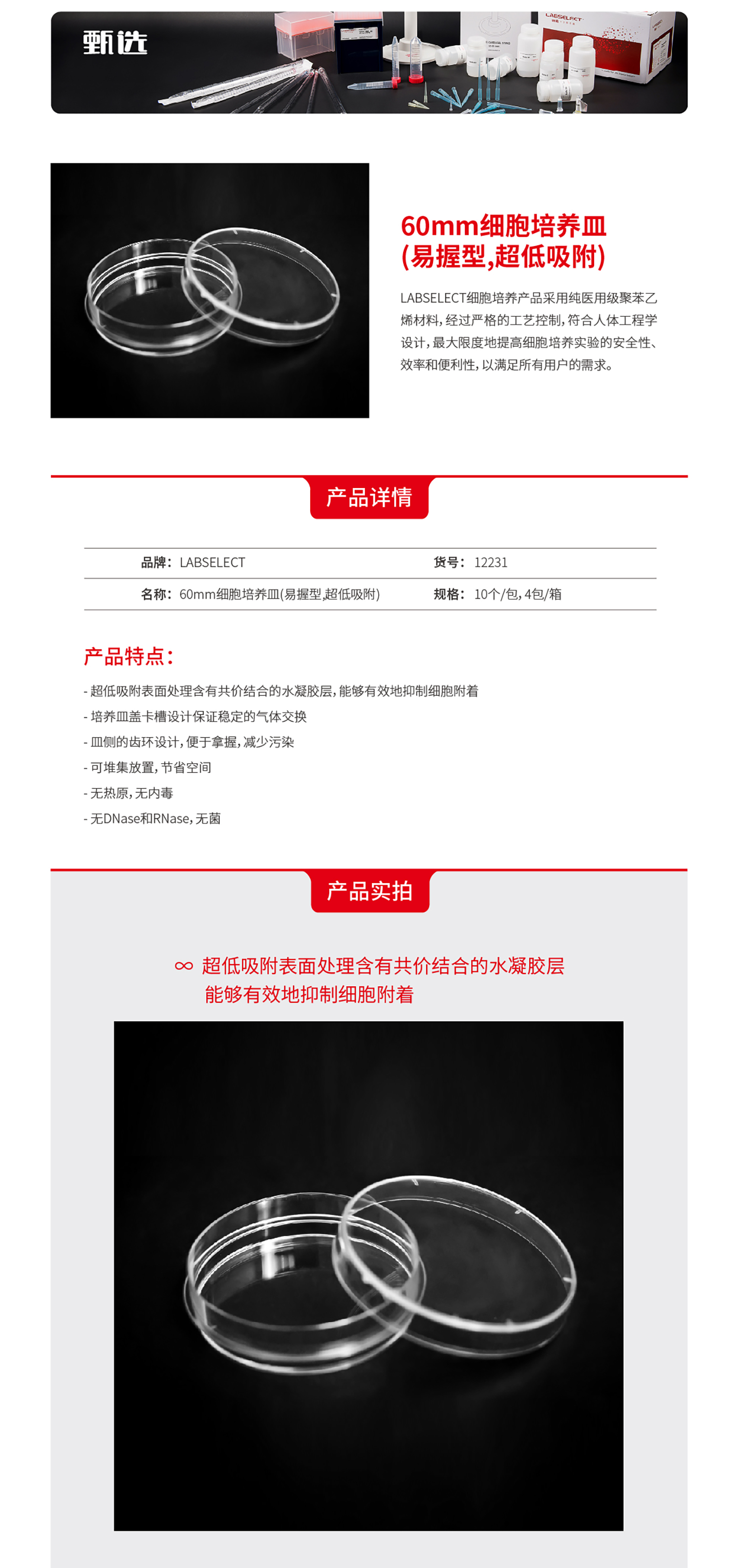 60mm细胞培养皿(易握型,超低吸附)